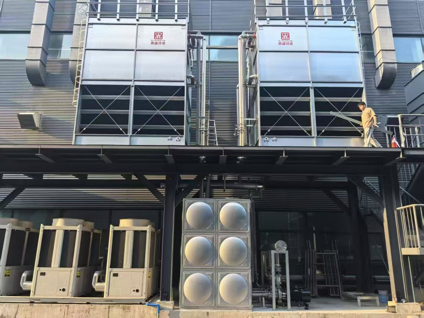 上海渝輝水冷式冷水機|冷卻塔|散熱塔調試安裝完畢